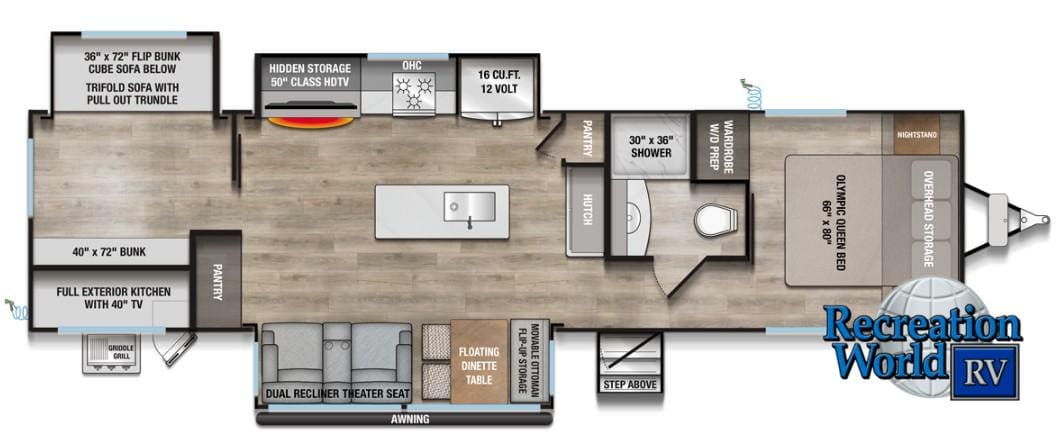 Disclaimer: Recreation World RV maintains this website as accurately as possible. All information, including but not limited to, pricing, product information, specifications, media and dealer promotions are subject to change without notice. Recreation World RV will not be held responsible for the accuracy of information contained in this or any other website.