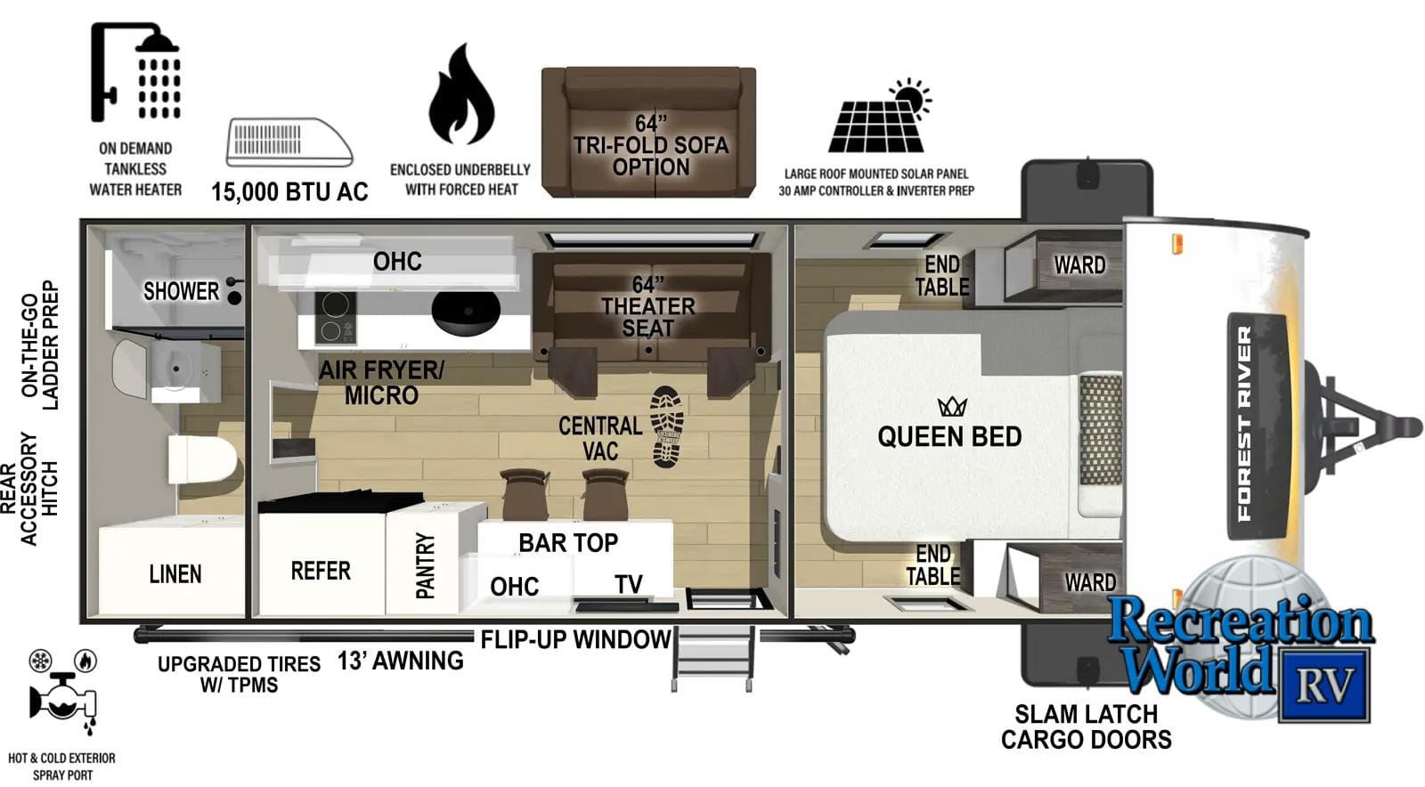 Disclaimer: Recreation World RV maintains this website as accurately as possible. All information, including but not limited to, pricing, product information, specifications, media and dealer promotions are subject to change without notice. Recreation World RV will not be held responsible for the accuracy of information contained in this or any other website.