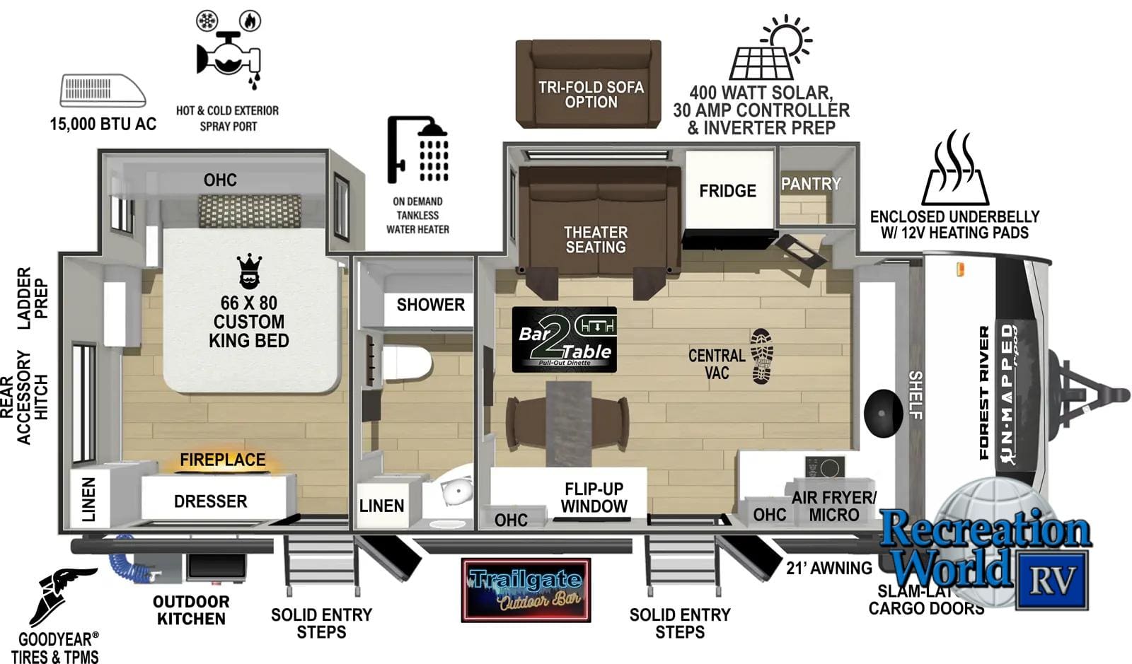 Disclaimer: Recreation World RV maintains this website as accurately as possible. All information, including but not limited to, pricing, product information, specifications, media and dealer promotions are subject to change without notice. Recreation World RV will not be held responsible for the accuracy of information contained in this or any other website.