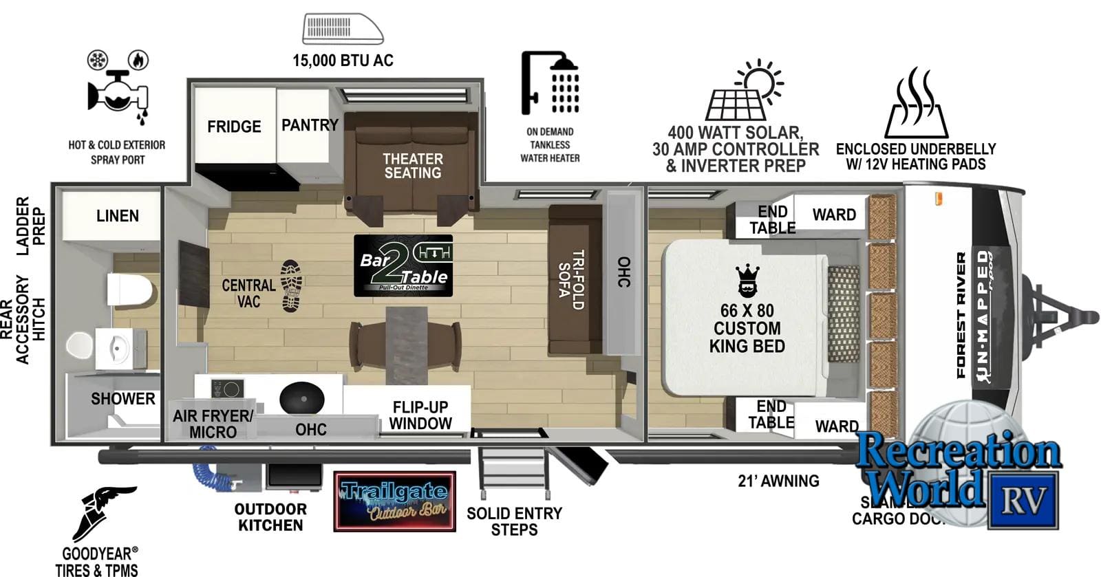 Disclaimer: Recreation World RV maintains this website as accurately as possible. All information, including but not limited to, pricing, product information, specifications, media and dealer promotions are subject to change without notice. Recreation World RV will not be held responsible for the accuracy of information contained in this or any other website.