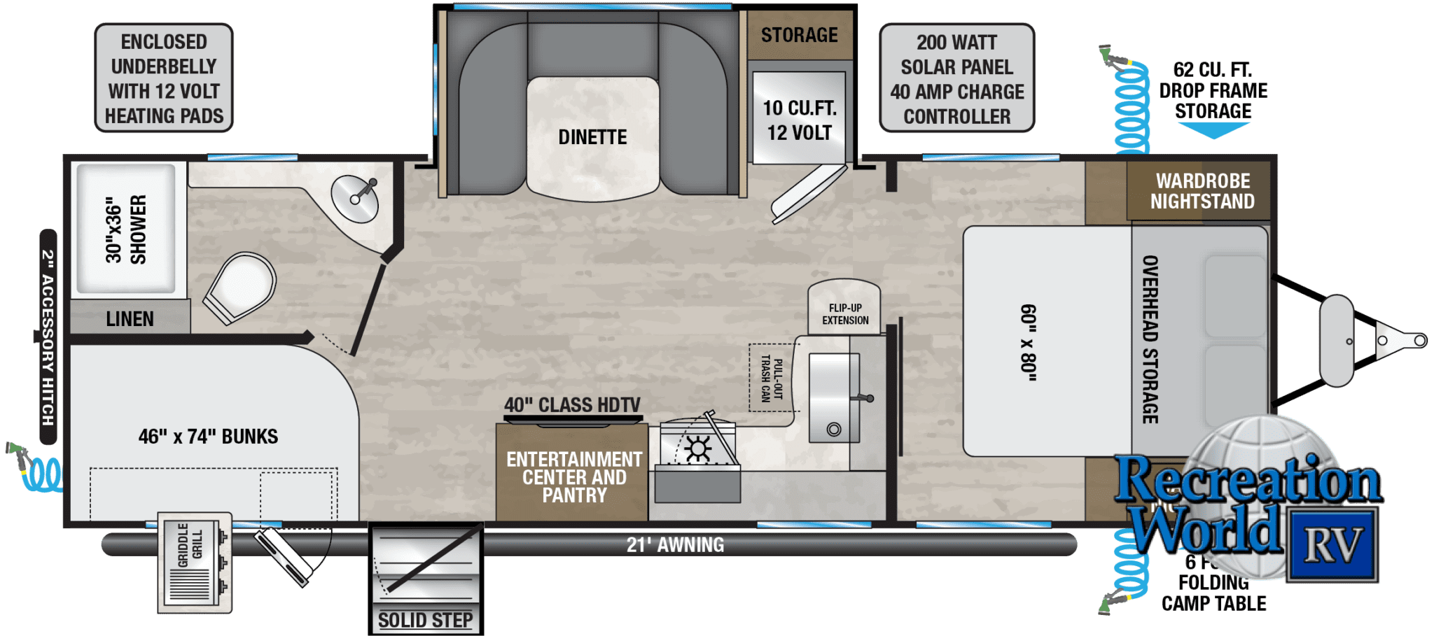 Disclaimer: Recreation World RV maintains this website as accurately as possible. All information, including but not limited to, pricing, product information, specifications, media and dealer promotions are subject to change without notice. Recreation World RV will not be held responsible for the accuracy of information contained in this or any other website.