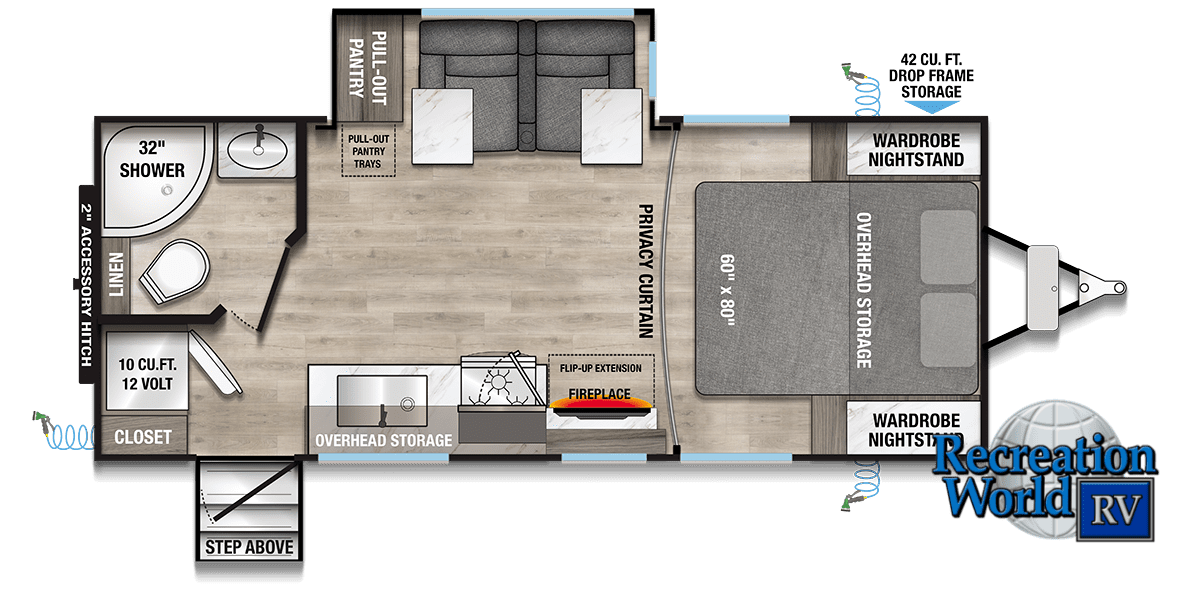Disclaimer: Recreation World RV maintains this website as accurately as possible. All information, including but not limited to, pricing, product information, specifications, media and dealer promotions are subject to change without notice. Recreation World RV will not be held responsible for the accuracy of information contained in this or any other website.