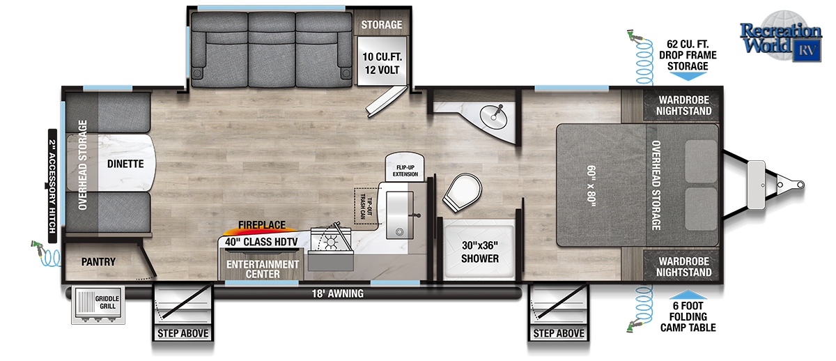 Disclaimer: Recreation World RV maintains this website as accurately as possible. All information, including but not limited to, pricing, product information, specifications, media and dealer promotions are subject to change without notice. Recreation World RV will not be held responsible for the accuracy of information contained in this or any other website.