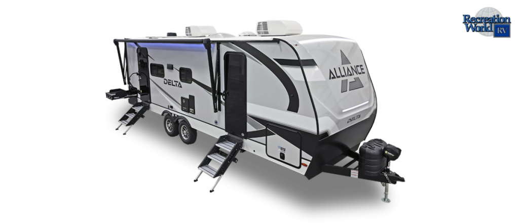 The Alliance RV Delta 252RL travel trailer blends adventure with comfort, providing features like a spacious rear living area and a walk-through bath. Key highlights include a queen bed in the front master bedroom, ample wardrobe storage, a fireplace, and dual entry doors for convenience and privacy. The trailer is equipped with a 10-cu. ft. 12V refrigerator and smart storage solutions. Ideal for camping trips, it offers a booth dinette with overhead storage and a sofa with a view of a 40" HDTV. An exterior griddle enhances outdoor cooking experiences, making this trailer a perfect home away from home.
